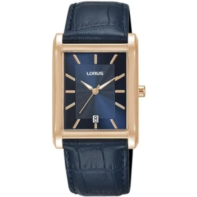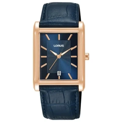 Lorus Men’s Rectangular Blue Leather Strap RH942RX9 This refined men’s watch combines timeless design with modern elegance Quartz watch features a classic rose-gold tone rectangular case with a blue pressed circular patterned inner dial, beautifully finished with a sunray effect. The semi-luminous hands ensure visibility in all lighting conditions Date window at the 6 o’clock position adds practicality The durable case and genuine blue leather bracelet provide strength and comfort ensuring reliability for daily wear 50M Water Resistant This sophisticated watch is an ideal accessory for any occasion, seamlessly blending style and functionality.