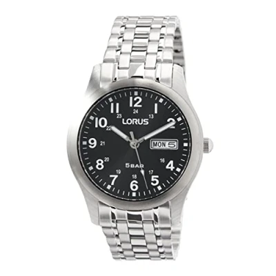 Lorus Men's Watch RXN73DX5, Stainless Steel, Quartz, Black Dial, Waterproof to 50 meters, Mineral Glass