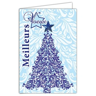 LOT10 61 4069 B BA Pack of 10 Cards + Envelopes Best Wishes Christmas Tree Collage Blue Star