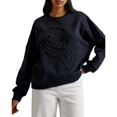 LOTISS Embroidered Burnout Graphic Sweatshirt
