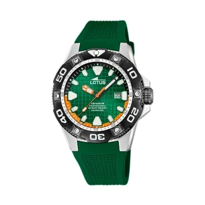 Water Resistance to 200 meters and 2 years Manufacturer Warranty Stainless Steel Case Rubber Strap with Classic Stainless steel Buckle Scratch resistant Sapphire Glass Divers Watch with Screw Down Winder