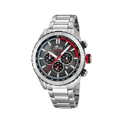 This men's chronograph has a case diameter of 45.5 mm and belongs to the Lotus Khrono collection The casing is made of stainless steel and is in the colour silver The silver watch strap is made of stainless steel and can be closed securely on the wrist with a folding clasp The watch has a water resistance of 10 bar (the watch is suitable for e.g. frequent swimming or snorkeling) At the heart of this watch is a quartz movement