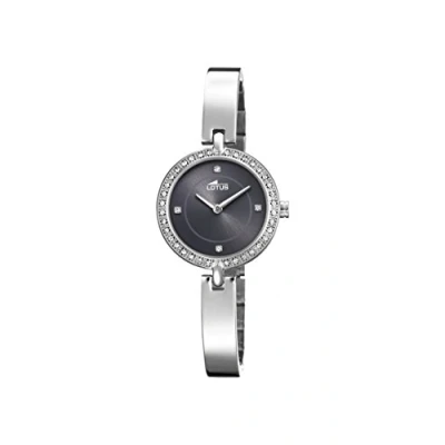 Stainless steel round case Water resistance to 50 meters Stainless steel bangle design bracelet Hardened mineral glass Stone settings in dial and bezel