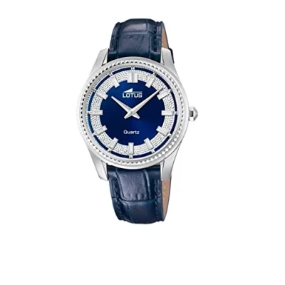 Very beautiful women's watch from the brand. Lotus The watch has a silver stainless steel case with a diameter of 38 mm Blue dial, silver hands and colourful indices, mineral glass, pin buckle, lotus logo The watch has a water resistance of 5 bar (suitable for everyday use such as B. bathing, showering or washing hands) Equipped with a quartz movement