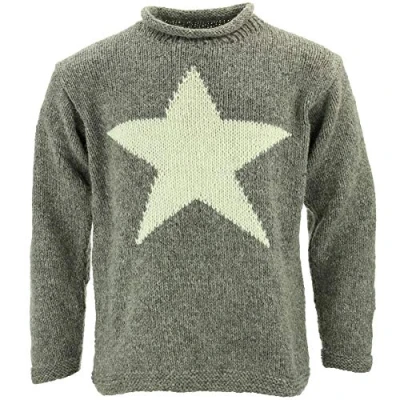 LOUDelephant Chunky Wool Knit Star Jumper Grey & Cream (Large)