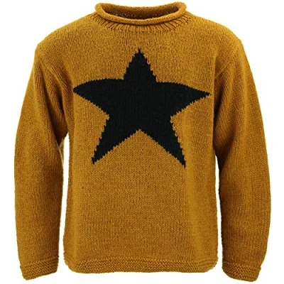 LOUDelephant Chunky Wool Knit Star Jumper Mustard & Black (Medium)