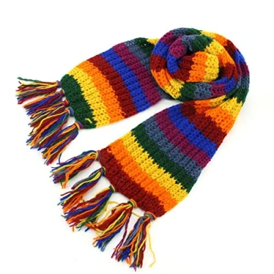 Hand knitted wool scarf, great for keeping you cosy, warm and colourful! Made from 100% New Zealand sheep's wool and hand crafted in Nepal by artisans living and working in remote areas of the Kathmandu Valley, the wool is brought to the villages so that the knitters can maintain their close knit families and communities rather than going away to work in Kathmandu for large portions of the year. Dimensions: Length - 160cm (63") // Width - 18cm (7.1") // Tassels - 12cm (4.7") - All measurements are approx.