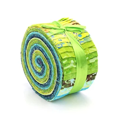 Bundles of various quantities of 2.5" x 37" (approx.) strips of cotton Batik fabric in a mix of prints and colours all bundled into an attractive 'Jelly Roll'. Loads of different fabrics in each roll, suitable for a variety of quilting projects. Each piece contains a variety of fabrics in various colours and designs. Please note that slight fabric variations can occur in each bundle. This product is handmade, it is not mass produced so slight differences and minor imperfections are common.