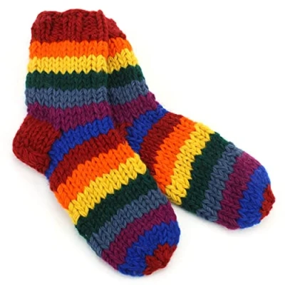 Beautifully crafted wool ankle socks designed to be worn over socks because they are not lined with fleece like many similar products. These are so cosy and warm they will keep you happy even in the coldest months! Plastic Free. Available in lovely colours and designs, including striped and Space Dye. Plastic Free. Made from 100% New Zealand sheep's wool and hand crafted in Nepal by artisans living and working in remote areas of the Kathmandu Valley, the wool is brought to the villages so that the knitters can maintain their close knit families and communities rather than going away to work in Kathmandu for large portions of the year. Approx. measurements: Heal to toe - 25cm / 9.8"; Heal to top - 19cm / 7.5". Made from wool so there is plenty of stretch in these socks making them suitable for UK sizes 4-11 / EU sizes 36-43.