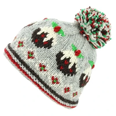 LOUDelephant Hand Knitted Wool Beanie Bobble Hat Christmas Puddings