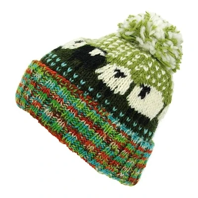 LOUDelephant Hand Knitted Wool Beanie Bobble Hat Sheep Green Multi