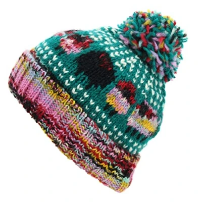LOUDelephant Hand Knitted Wool Beanie Bobble Hat Sheep Teal Pink SD