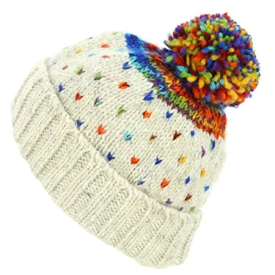 LOUDelephant Hand Knitted Wool Beanie Bobble Hat Tik Cream