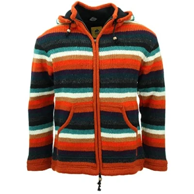 Made from 100% New Zealand sheep's wool and handcrafted in Nepal by artisans living and working in remote areas of the Kathmandu Valley, the wool is brought to the villages so that the knitters can maintain their close-knit families and communities rather than going away to work in Kathmandu for large portions of the year. Handmade wool knit hooded zip jacket with a warm fleece lining, front pouch pocket, inside pocket, and a removeable zipped hood for a flexible look. A practical hoodie cardigan, great for laying up throughout the colder months and keeping warm around the fire during cool summer evenings. Available in a range of unisex sizes. See product description and images for a detailed Size Guide. This product is handmade so minor imperfections and slight differences are common, this gives each product its unique character - which you can't get from mass-produced goods.