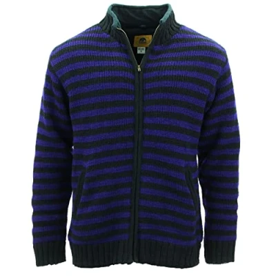Handmade wool knit zipped jacket with a warm fleece lining, side pockets, and an inside pocket. A practical cardigan, great for laying up throughout the colder months and keeping warm around the fire during cool summer evenings. Available in a range of unisex sizes. See product description and images for a detailed Size Guide. Made from 100% New Zealand sheep's wool and hand crafted in Nepal by artisans living and working in remote areas of the Kathmandu Valley, the wool is brought to the villages so that the knitters can maintain their close knit families and communities rather than going away to work in Kathmandu for large portions of the year. This product is handmade so minor imperfections and slight differences are common, this gives each product its unique character - which you can't get from mass-produced goods.