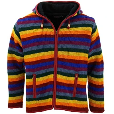 LOUDelephant Wool Knit Fleece Lined Hooded Jacket Rainbow (X Large)