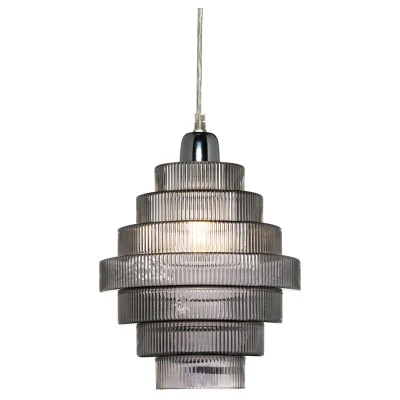 Louisa Light Shade Ribbed Glass Easyfit Pendant Lampshade Smoke Tint Litecraft
