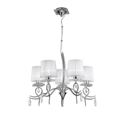 Louise Ceiling Chandelier 5 Light E27 With White Shades Polished Chrome/Clear Crystal