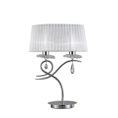 Louise Table Lamp 2 Light E27 Large with White Shade Polished Chrome, Clear Crystal