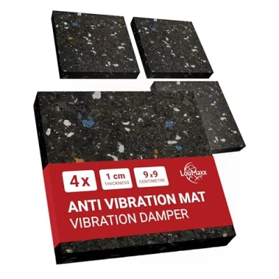 VERSATILE APPLICATION: The LouMaxx anti-vibration mat is highly versatile, ideal for use with washing machines, dryers, refrigerators, freezers, or as a sound absorbing mat for appliances like coffee machines, music boxes, sewing machines, and printers. It’s also great as a shower pump vibration mat, vibration mat, or gym mat. PREMIUM QUALITY: The LouMaxx anti vibration pad stands out for its superior quality compared to competitors. LouMaxx mats are 1,0 cm thick, while most competitors offer only 0,5 - 0,8 cm, ensuring optimal performance as a sound absorbing mat or washing machine mat. EFFECTIVE ANTI-VIBRATION: LouMaxx washing machine vibration dampers effectively reduce unwanted noise, making them an excellent choice for anti vibration pads. These pads keep your washing machine stable during the spin cycle, preventing movement and protecting your floors. The anti vibration mat washing machine option ensures full protection. ECO-FRIENDLY MATERIALS: LouMaxx washing machine vibration mat is made from odorless, PAK-free rubber granulate. Produced from 100% recycled materials, this washing machine vibration mat is both sustainable and environmentally friendly. COMPLETE PACKAGE: The LouMaxx anti vibration mat set includes 4 mats, each measuring 9 x 9 x1,0 cm. These mats isolate your appliances from the floor, preventing vibrations and noise from traveling through your home. The LouMaxx washing machine mat anti vibration solution ensures a quieter, more peaceful environment.