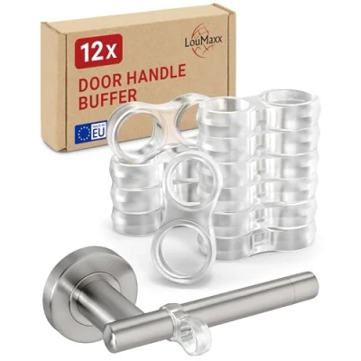 PERFECT PROTECTION: Made from high-quality, flexible plastic, LouMaxx door handle bumper and door handle bumpers are ideal for preventing damage to walls and furniture from door or window handles. Also serves as a wall protector from door handle impacts. EASY INSTALLATION: No tools required! Simply slide the transparent door handle protectors for walls onto round or oval handles and adjust to the desired position. No drilling or adhesive needed! VERSATILE USE: The door handle wall protector fits securely and can be removed without leaving any residue. Works perfectly as both a door protector and a door handle stopper for wall. HIGH-QUALITY MATERIAL: Made from durable, flexible plastic for optimal shock absorption, these rubber door handle covers are odorless, transparent, and unobtrusive—a discreet yet effective door wall protector and door stop wall protector. PACKAGE CONTENTS: Includes 12 transparent door handle bumpers for door and window handles; opening diameter: 17mm/15mm, also functioning as a door handle cup protector and door bumpers., Weight: 80.0 grams, Manufacturer: LouMaxx
