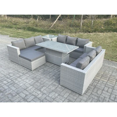 Lounge Rattan Garden Furniture Set Adjustable Rising Lifting Table Dining With Side Coffee Tea Footstool Fimous