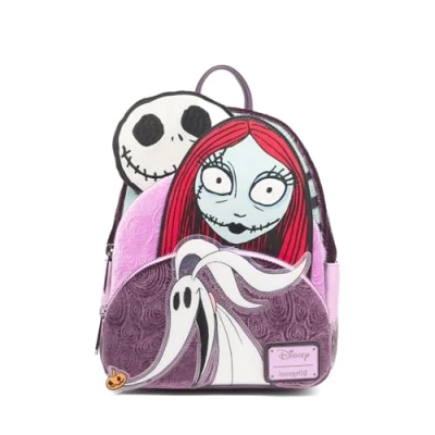 Material: Velvet Measurements: 9” W x 10.5” H x 4.5” D Wipe clean Get ready to celebrate the magic of Halloween Town with the Loungefly Disney Nightmare Before Christmas Glow in the Dark Jack, Sally, and Zero Mini Backpack – 707 Street Exclusive! Crafted with luxurious velvet accents, this bag brings Jack, Sally, and Zero to life with intricate details and glow-in-the-dark features for added enchantment. Side pockets showcase beautifully illustrated scenes like the hill and pumpkin patch, while the interior features custom Nightmare Before Christmas artwork. This bag features applique, glow in the dark, embroidered, and printed details.