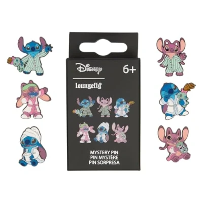 Loungefly Disney Stitch Stich & Angel In Pyjamas Enamel Pin 1 Of 6 to Collect Styles Vary Lilo and Blind Box Pins Cute Collectable Novelty Brooch for Backpacks Bags