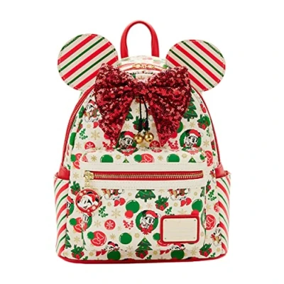 Loungefly Minnie Mouse Christmas Holiday Themed Womens Double Strap Shoulder Bag Purse, White