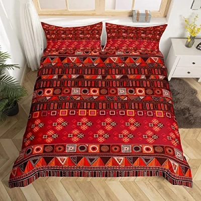 Loussiesd Bohemian Duvet Cover Set King Size Southwestern Indian Bedding Stylish Decorative Geometric Comforter with 2 Pillowcases Striped Ethnic Style Soft Microfiber Zipper 3 Pcs Novely