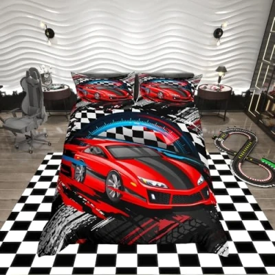Loussiesd Racing Car Bedding Set for Girls Boys Children Teens Race Sports Comforter Cover Extreme Theme Duvet Decorative Bedspread Single Size Collection 2Pcs