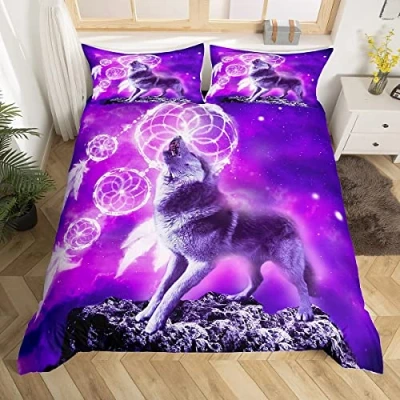 Loussiesd Wolf Dreamcatcher Bedding Duvet Cover Set Double Galaxy Animal 3D Printed for Adult Kids Bedroom Modern Decorative Soft Microfiber Exotic Bohemia Comforter/Quilt Boys