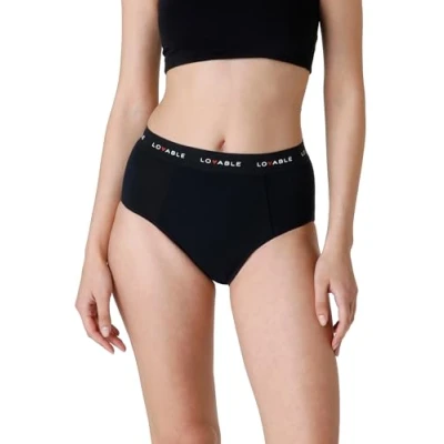 Lovable Period Panties Women's High Briefs for Menstrual Cycle, Black+Logo, M