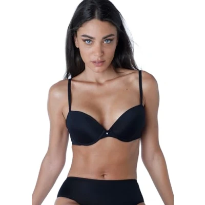 Underwired bra with padded cups push-up effect Pre-shaped cups covered with smooth microfiber for maximum invisibility Adjustable straps with the possibility of crossing t-back thanks to the presence of two types of slider and loops on the back Back bagout therefore no elastic bands in contact with the skin to avoid leaving unpleasant marks, thus ensuring total comfort. 4-position adjustable eye hook closure at the back for a tailored fit Invisible Secret: your beauty secret to ensure invisibility and maximum adaptability for your every look