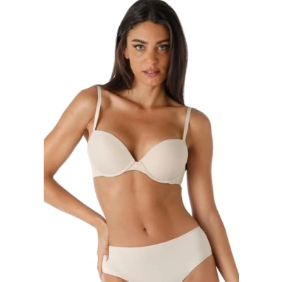 Underwired bra with padded cups push-up effect Pre-shaped cups covered with smooth microfiber for maximum invisibility Adjustable straps with the possibility of crossing t-back thanks to the presence of two types of slider and loops on the back Back bagout therefore no elastic bands in contact with the skin to avoid leaving unpleasant marks, thus ensuring total comfort. 4-position adjustable eye hook closure at the back for a tailored fit Invisible Secret: your beauty secret to ensure invisibility and maximum adaptability for your every look