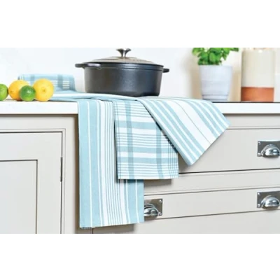 Dry up in style with this set of 3 jumbo tea towels in a calm and serene duck egg blue. Made from premium Indian cotton Extra Large size great for drying hands and dishes Handy hanging loop Machine wash at 40°C with similar colours.