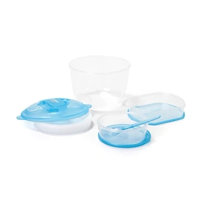 Clear containers with bright lids and included cool packs are great for storing and transporting any meal The Breakfast Set additionally includes a spoon and the Salad Set contains a spoon and fork Each set comes with your choice of blue, pink, purple, or yellow lids.