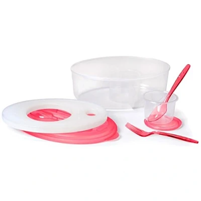 Clear containers with bright lids and included cool packs are great for storing and transporting any meal The Breakfast Set additionally includes a spoon and the Salad Set contains a spoon and fork Each set comes with your choice of blue, pink, purple, or yellow lids.