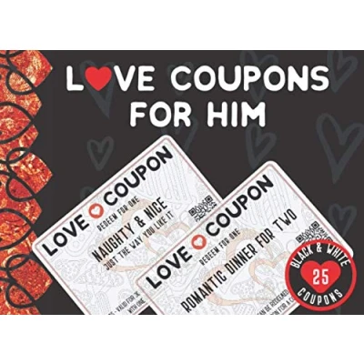 Love Coupons For Him (Black & White Version): 25 Fun, Naughty, Romantic Vouchers Husband Or Boyfriend. Valentines Day, Anniversary, Birthday, Christmas Novelty Gift Men