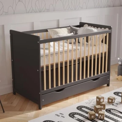 AmazonMade from the sturdy natural pine wood Converts to the toddler bed by using included wooden barrier Large covered drawer on runners (not the cheap version on the plastic wheels which scratches the floor) Three mattress base positions provide easier and safer access to the baby Deluxe 6cm foam mattress with antibacterial and hypoallergenic Aloe Vera cover. Highest quality resilience foam supports stable spine. Removable mattress cover for washing Suitable from birth to approximately three years of age Wood painted with baby's safe non-toxic paints Meets British safety standards: BS EN 716-1 ✔ BS EN 71-3 ✔ BS 5852 ✔ BS 7177 ✔ BS 1877 ✔ 12 months warranty and support afterwards