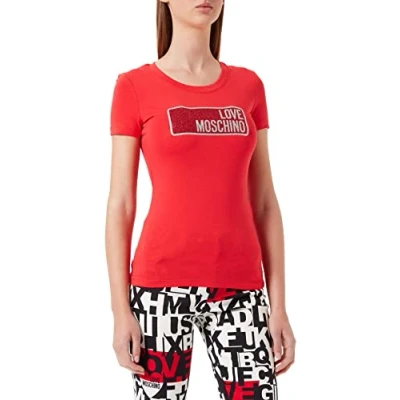 Love Moschino Women's t Shirt Glittered Brand Print, Red, 40