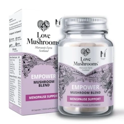 MULTI-LAYERED CARE FOR A NEW LIFE CHAPTER: We blend five adaptogenic mushrooms with trusted botanicals and essential micronutrients, offering a plant-based ritual that honours women’s changing needs during menopause while reflecting our Love Mushrooms ethos of mindful, earth-kind wellbeing. TRADITIONALLY RECOGNISED FOR BALANCE AND COMPOSURE: Lion’s Mane and Reishi have long been appreciated for nurturing calm and clarity, Red Clover and Sage are historically chosen by women for comfort during hot moments, while Vitamin B6 contributes to the regulation of hormonal activity and Zinc supports normal cognitive function. VEGAN AND CONSCIOUSLY CRAFTED: Our formula delivers certified-mushrooms alongside carefully sourced Sage, Hops and Saffron, then fortifies the blend with Magnesium, Folate, Vitamin D3, Vitamin K2, Vitamin B6 and Vitamin B12. All non-GMO, free from fillers and encapsulated in plant-based shells. DESIGNED FOR EVERYDAY EASE AND CONFIDENCE: Made in the United Kingdom to strict quality standards, EMPOWER slips neatly into busy routines, simply take one to two capsules with water. To provide a gentle, consistent way to nurture vitality and self-assurance through menopause and beyond. A LOVE STORY ROOTED IN CARE: At Love Mushrooms, we’re driven by love for both nature and people. We celebrate life, health, and sustainability in every step of our process. From our commitment to vegan products to our dedication to ethical practices, we strive to create mushrooms that not only nurture your body but also support the planet.