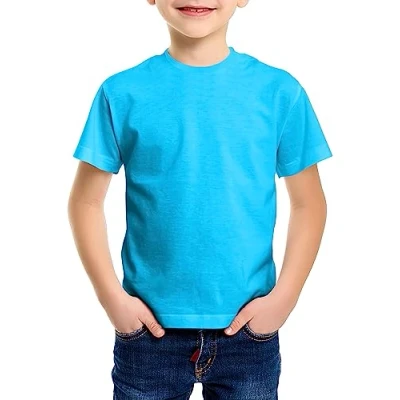 Love My Fashions® Kids Value Weight Crew Neck Plain T Shirt Short Sleeve Casual Tees for Boys Cotton Tops Children Azure Blue