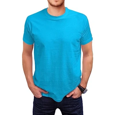 Love My Fashions Men's Round Neck Short Sleeves Plain T Shirt Azure Blue