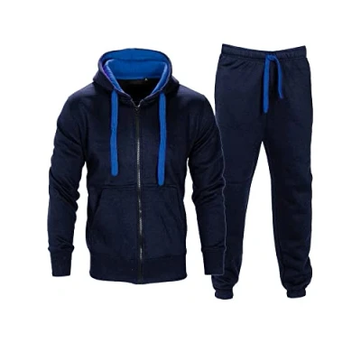 Love My Fashions® Men’s Tracksuit Full Sleeve Contrast Fleece Top & Bottom Cord Set Zipper Hood Jogging Suit Plus Sizes