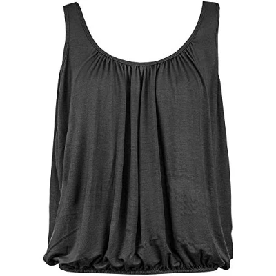 Love My Fashions® Women Bubble Hem Straps Vest Top Round Scoop Neckline Elasticated Swing Waist Sleeveless Black
