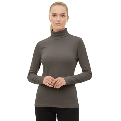 Love My Fashions® Women's Turtle Polo Neck Long Sleeve Plain Top Stretchy Pullover High Ladies Coffee