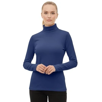 Love My Fashions® Women's Turtle Polo Neck Long Sleeve Plain Top Stretchy Pullover High Ladies Navy Blue