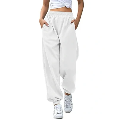Love My Fashions Women's Plain Gym Sport Jogger Sweatpants & Winters Joggers Pockets Pants and Baggy Elastic Waist Trousers for Casual Hip Hop, Jogging White
