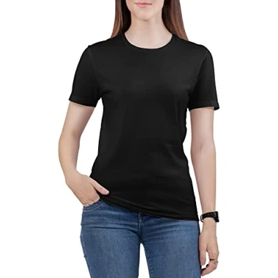 Love My Fashions Women's Round Neck Short Sleeves Plain Cotton T Shirt Black